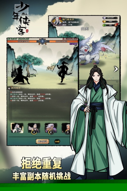 少年侠客九游版是一款以水墨国风为基调,融合了放置养成与策略战斗元素的武侠角色扮演游戏。玩家将扮演一名初入江湖的少年,在充满奇遇与挑战的武林世界中历练成长,构建了一个门派林立、正邪交织的宏大江湖,通过丰富的剧情线和角色互动,生动展现了侠义精神与江湖恩怨。从基础的武学修炼到复杂的经脉打通,从结识各路豪侠到参与门派纷争,每一步都让玩家沉浸式体验从无名小卒到一代大侠的完整蜕变历程。