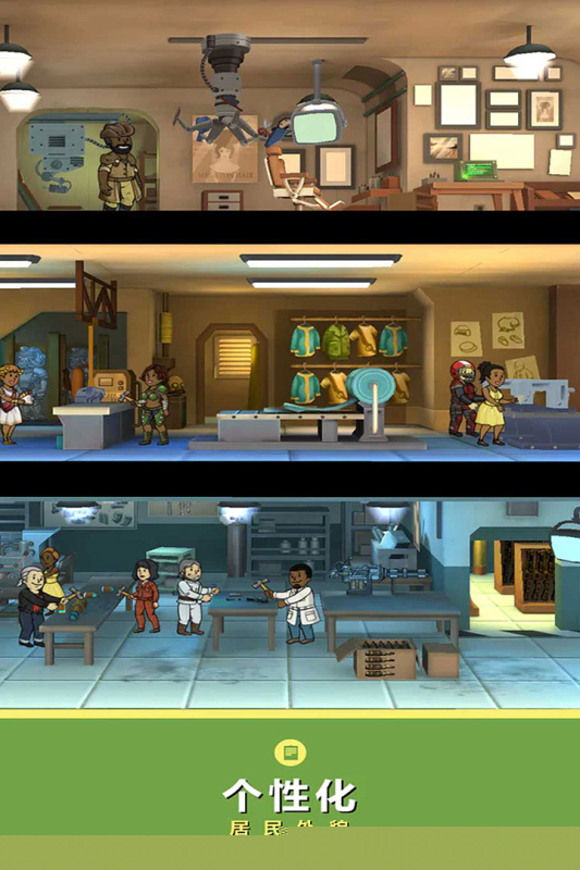 居民拥有独立的S.P.E.C.I.A.L.属性与成长系统,能力直接关系到避难所不同房间的运作效率与探索成果。