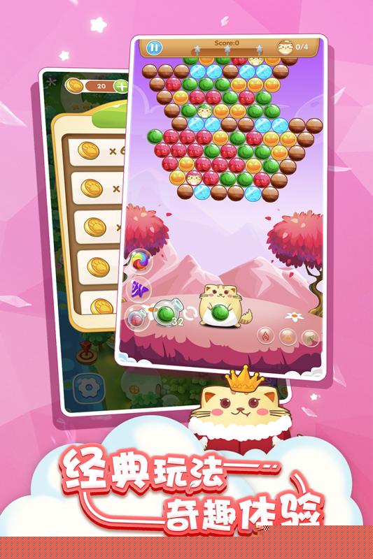 经典泡泡射击玩法与萌系猫咪主题的创意结合,营造出轻松治愈的游戏氛围。