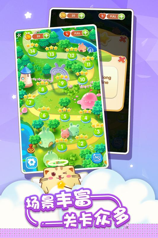 经典泡泡龙玩法与猫咪收集养成系统深度结合,每一只解锁的猫咪都拥有独特的造型与背景故事。