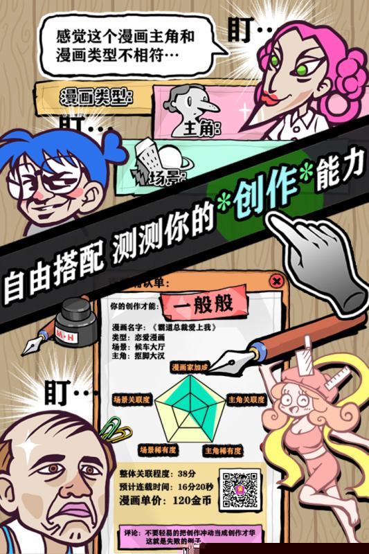 作品质量由多个隐藏属性共同决定,如剧情张力、画工精细度等,为创作过程增添了策略深度。