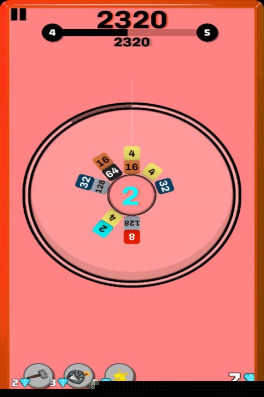 游戏初期,核心在于建立秩序。优先将接住的较小数字方块(如2、4)沿圆盘一侧或特定扇区集中放置,避免们分散占据宝贵空间。主动旋转圆盘,引导新掉落的方块向已聚集的区域靠拢,为后续合成创造便利条件。此阶段不必急于合成高数字,稳固的基础布局更为关键。