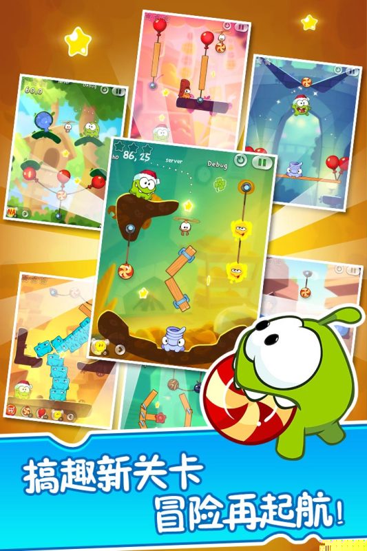 割绳子2华为版是一款将经典物理益智玩法与华为终端特性深度融合的休闲游戏,延续了绿色小怪兽Om Nom对糖果的渴望。置身于色彩缤纷的卡通世界,通过精准切割绳索、利用多样道具,引导糖果穿越复杂机关,最终安全送入Om Nom口中。每一关都像一道精巧的谜题,考验着的观察力、逻辑思维与时机把握。