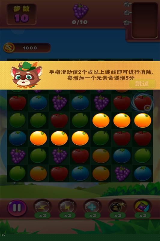 开局阶段优先观察整个盘面,识别颜色最集中或具有潜在连锁可能的水果群。初期行动应服务于激活棋盘边缘或角落的阻塞点,扩大可操作区域比追求单次高分更为重要。利用系统赠送的初始道具,如刷新器,在陷入僵局时重置局部区域,而非随意使用。