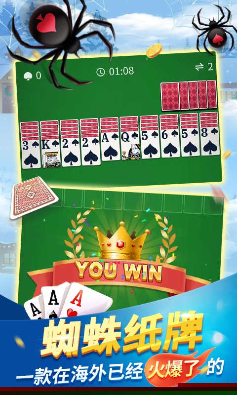 经典蜘蛛纸牌是一款将深度策略包裹在极简形式下的逻辑解谜游戏,魅力在于规则五分钟就能学会,但精通却需要数百局的锤炼。每一次洗牌发牌都生成一个全新的谜题,没有完全相同的两局,保证了重复游玩的耐玩性。从小心翼翼翻开第一张暗牌,到运筹帷幄调度整个牌面,大脑始终处于一种愉悦的推演状态。那种通过精密计算将一团乱麻梳理整齐的成就感,配合柔和不刺眼的画面与清脆的牌面音效,共同构筑了一个能让人暂时忘却烦恼、全心投入的思维乐园,证明了最好的娱乐有时并不需要华丽的特效,一组朴素的纸牌和一套严谨的规则,便足以提供长久而纯粹的乐趣。