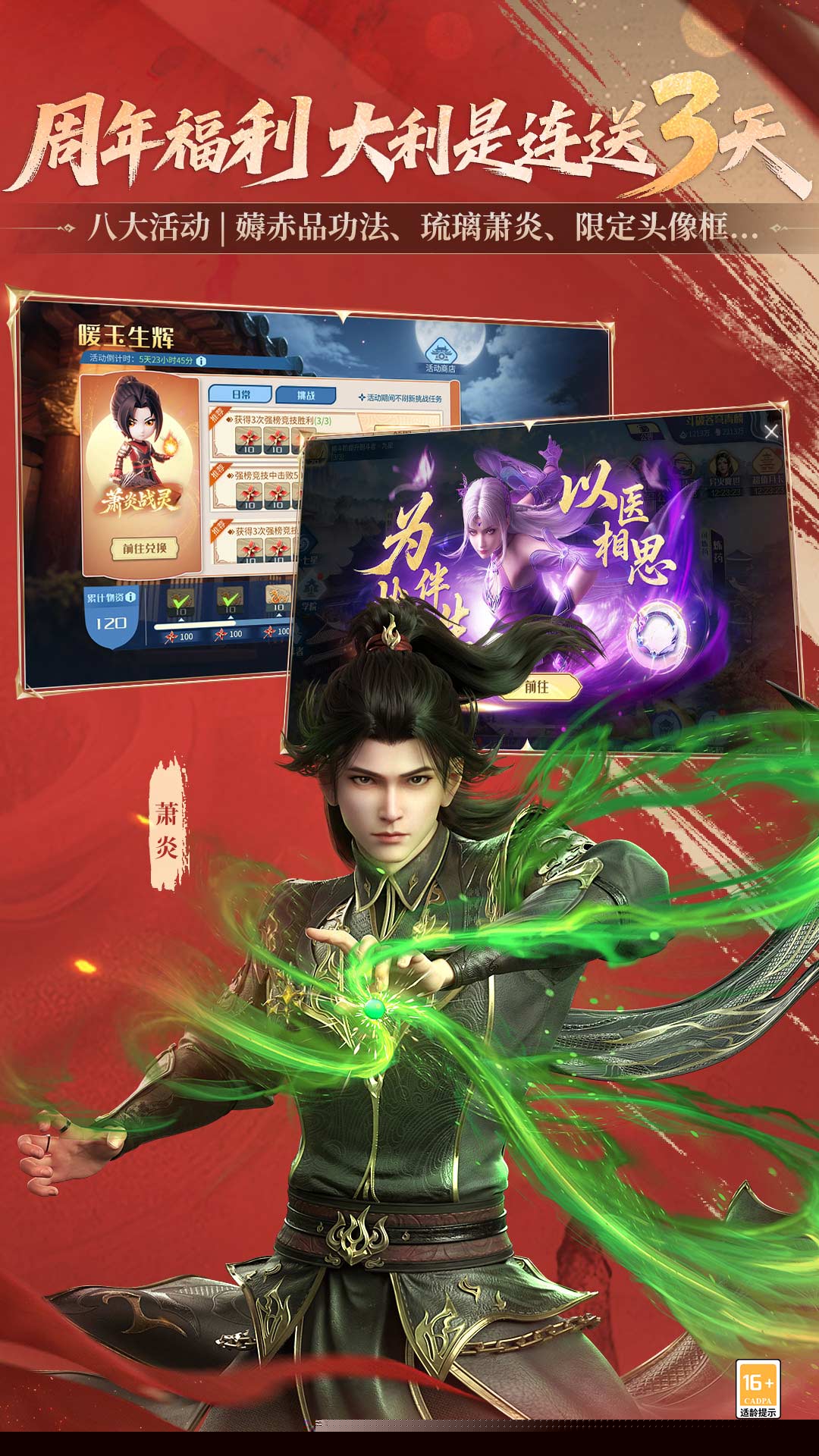 动画级视听呈现,精准复刻云岚宗大战、收服青莲地心火等经典剧情场景,带来沉浸式剧情体验。