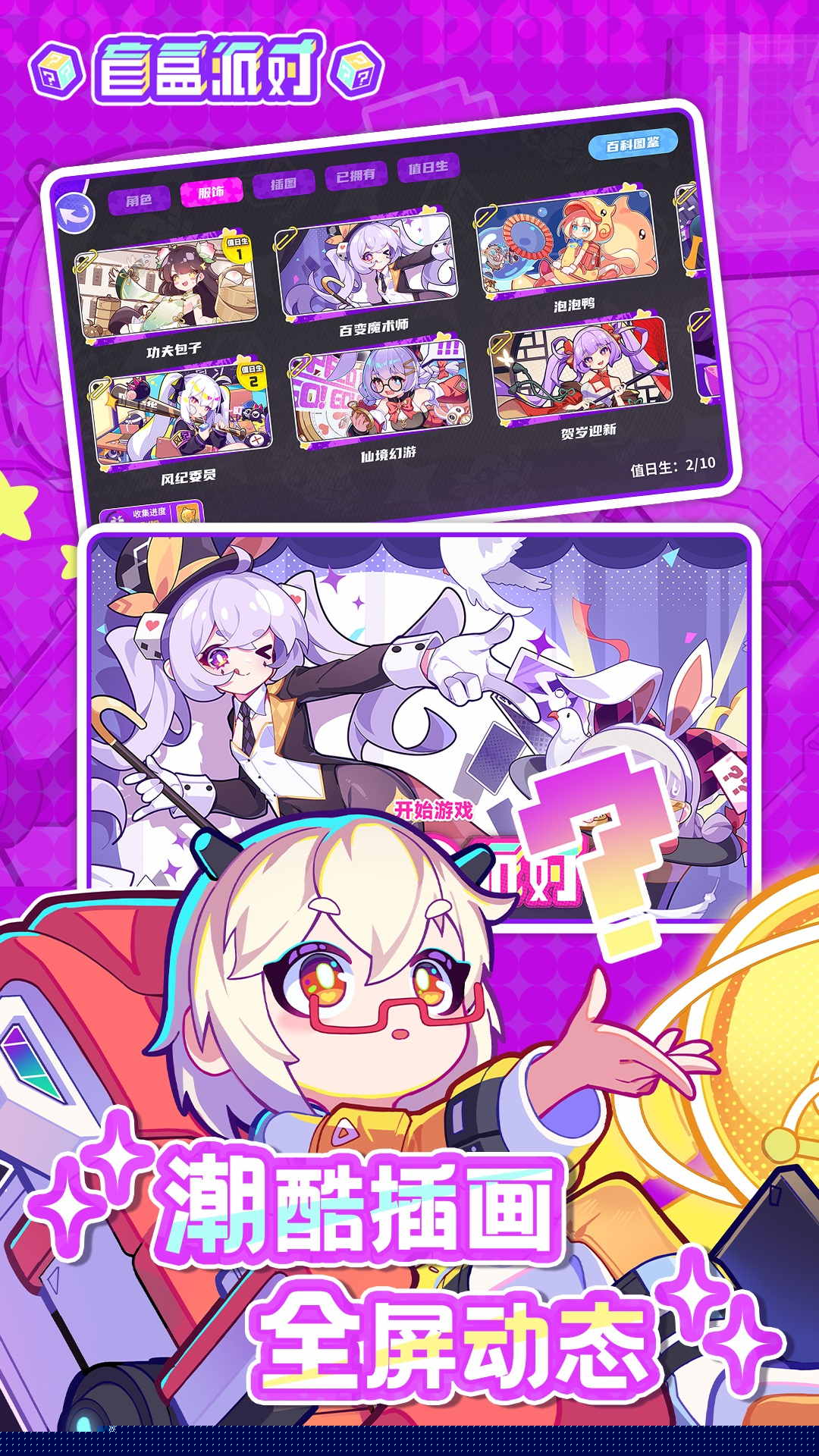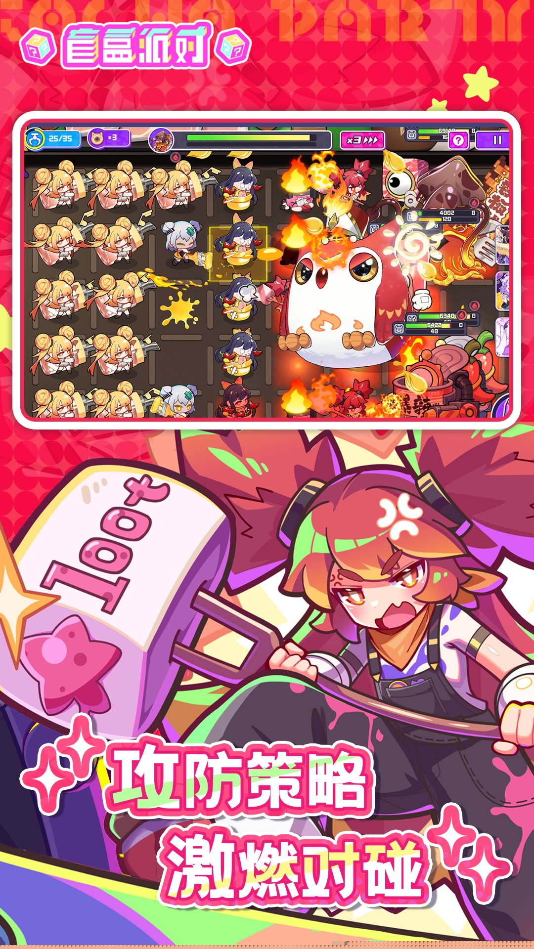 盲盒派对是一款将潮玩盲盒文化与策略塔防玩法深度融合的游戏,置身于一个由无数精美盲盒构成、充满奇思妙想的幻想世界。每一个盲盒都封印着一位能力各异的美少女战士,她们是抵御入侵、守护派对乐园的核心力量,的核心主题围绕着收集、养成与策略布阵展开,通过开启盲盒解锁角色,并指挥她们在风格多变的关卡中应对挑战,体验一场集视觉享受与头脑风暴于一体的欢乐派对。