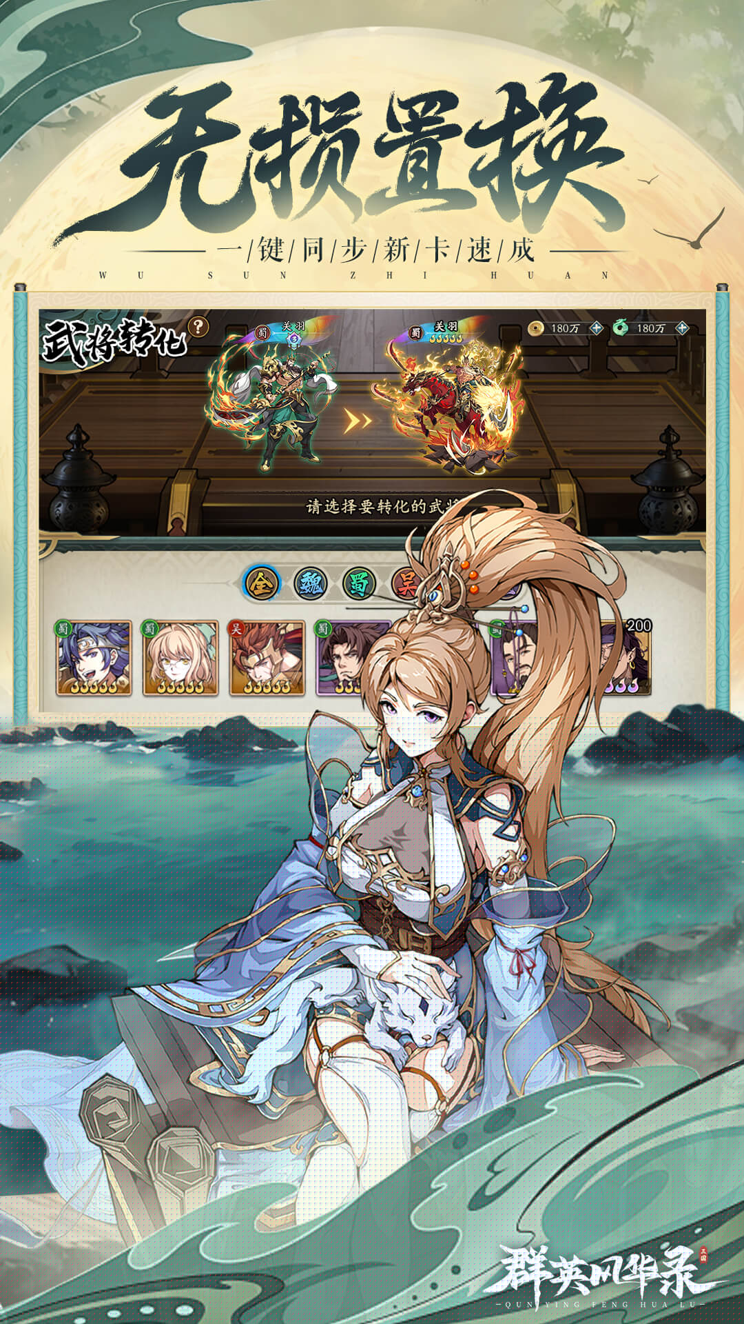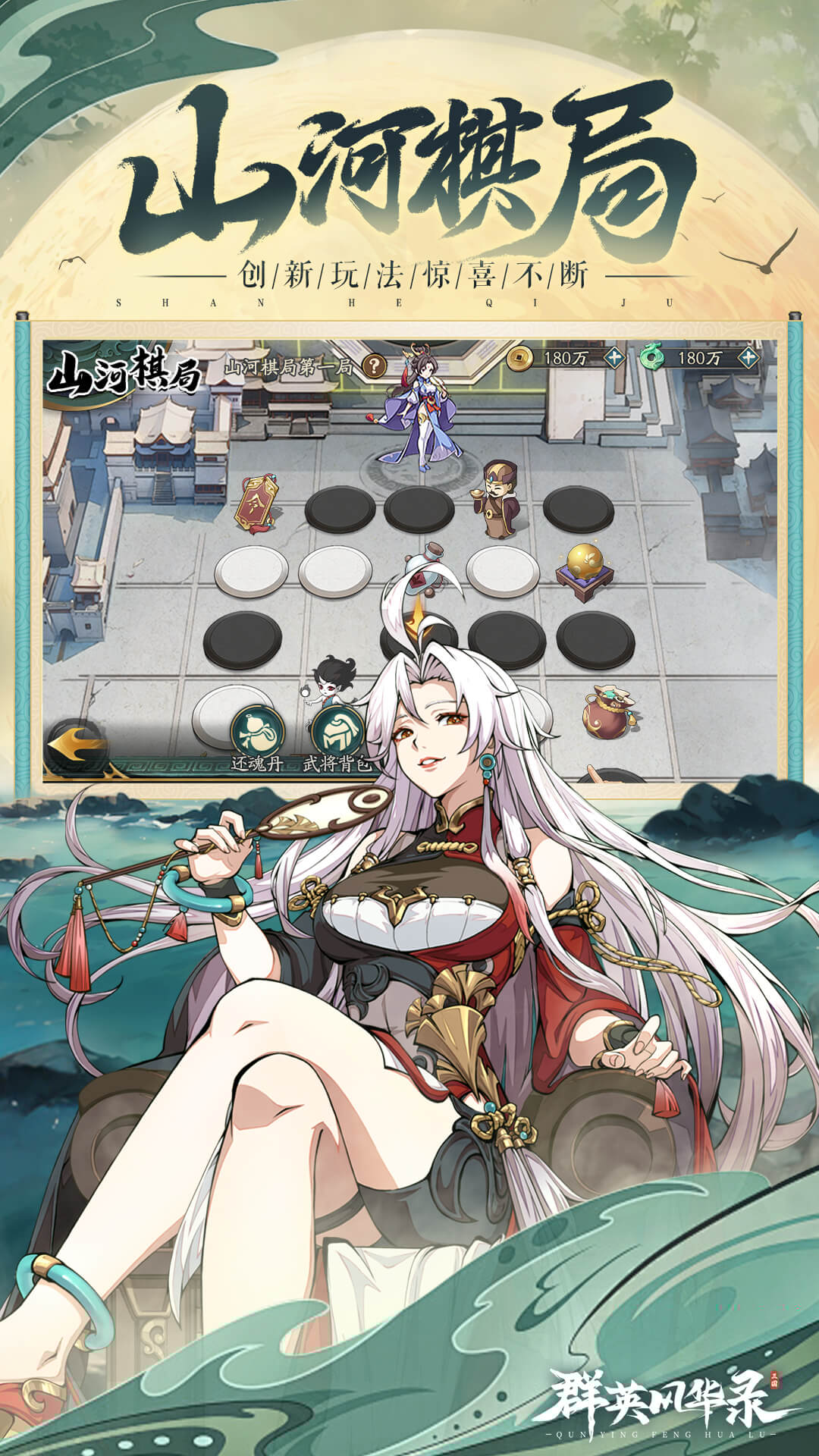群英风华录是一款以国漫美学重构三国史诗的卡牌策略游戏,将烽火连天的历史舞台与红颜群英的璀璨风华交织呈现,世界在新潮国漫的笔触下焕然一新,从赤壁的烈焰到隆中的风雪,经典战役与典故被赋予极具张力的视觉演绎。将置身于这个既熟悉又充满新意的乱世,招募与养成独具个性的名将与红颜,通过策略布阵与羁绊组合,书写一段属于自己的群英传奇。