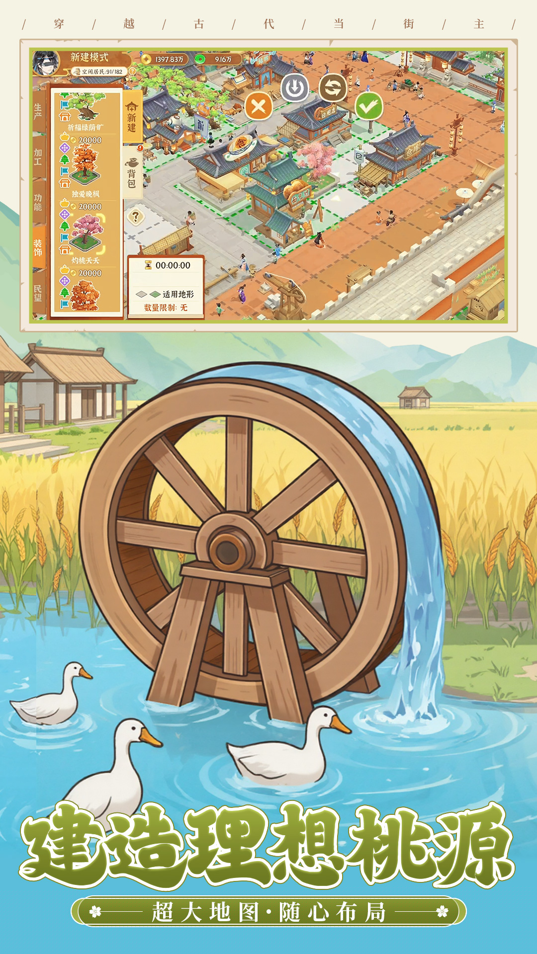 从前有条街是一款融合了穿越、田园经营与科技种田的模拟建设游戏,将扮演一位意外穿越至古代荒芜街巷的现代街主。面对百废待兴的局面,从最基础的农耕畜牧起步,逐步引入超越时代的科技与理念,亲手将一片凋零之地改造为古今交融、繁荣新奇的梦幻街市,世界充满了反差与惊喜,传统农耕文明与现代生活需求碰撞出无限火花,核心主题在于通过智慧与创造力,引领古代居民体验一场跨越千年的生活方式革命。