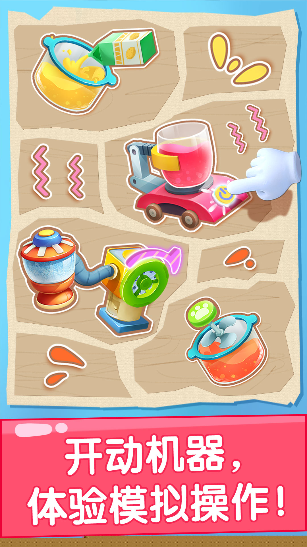 将复杂的果汁生产线简化为直观的触控互动,每一步操作都伴有即时反馈与鼓励,构建沉浸式角色扮演环境。