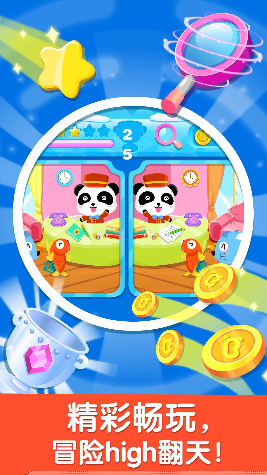 每处差异被找出时,伴有生动的视觉与音效反馈,并给予金币奖励,强化正向行为。