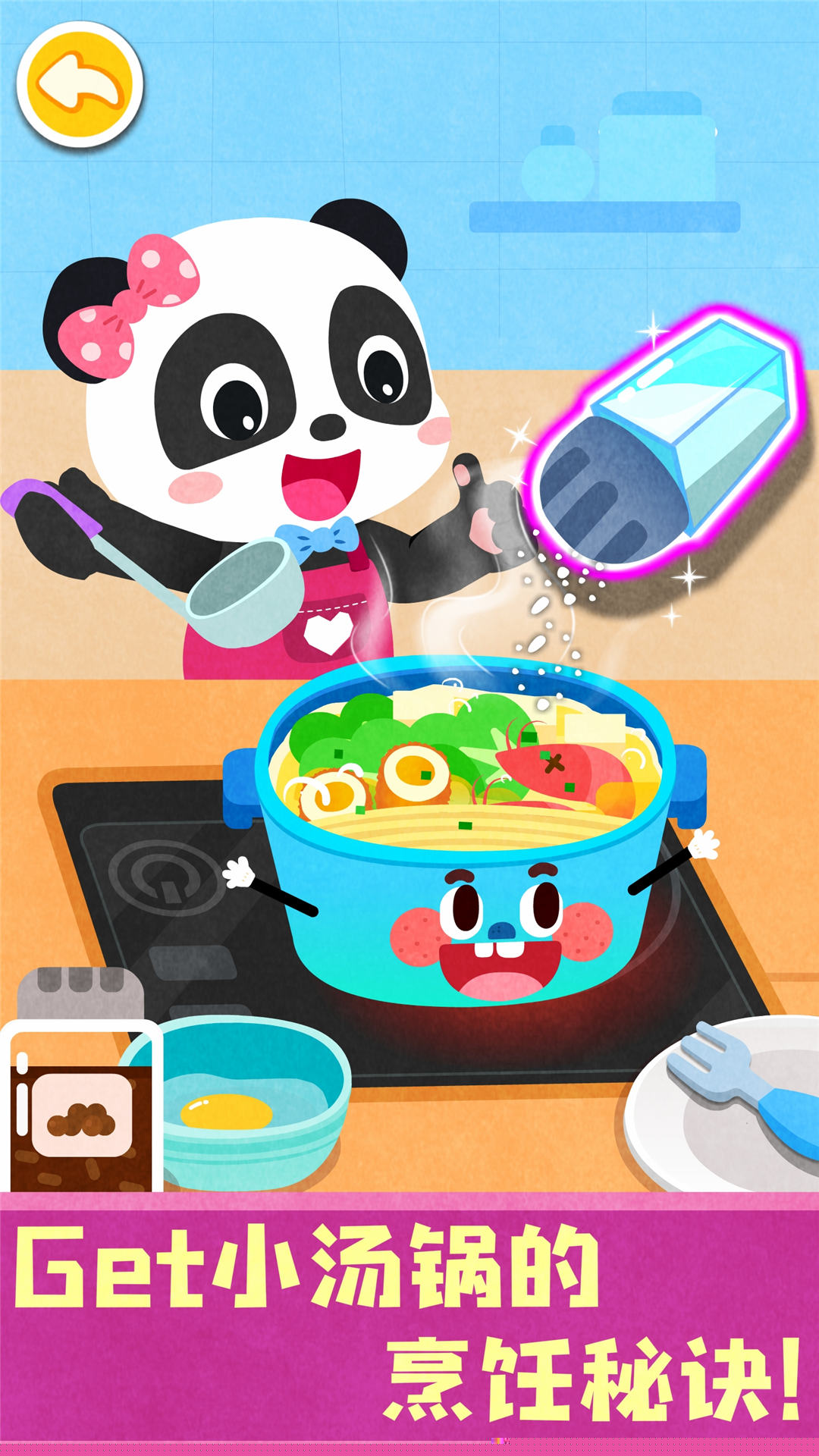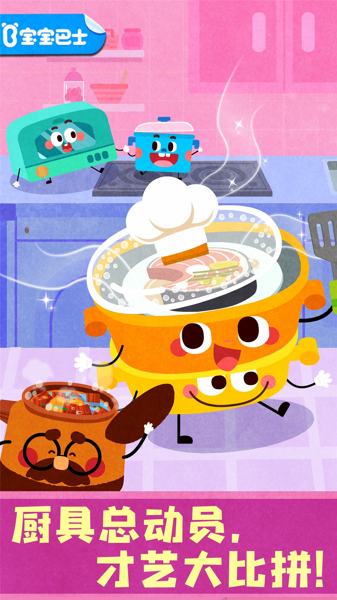 沉浸式角色扮演体验,赋予锅具拟人化生命,让宝宝以小帮厨身份参与趣味烹饪比赛。
