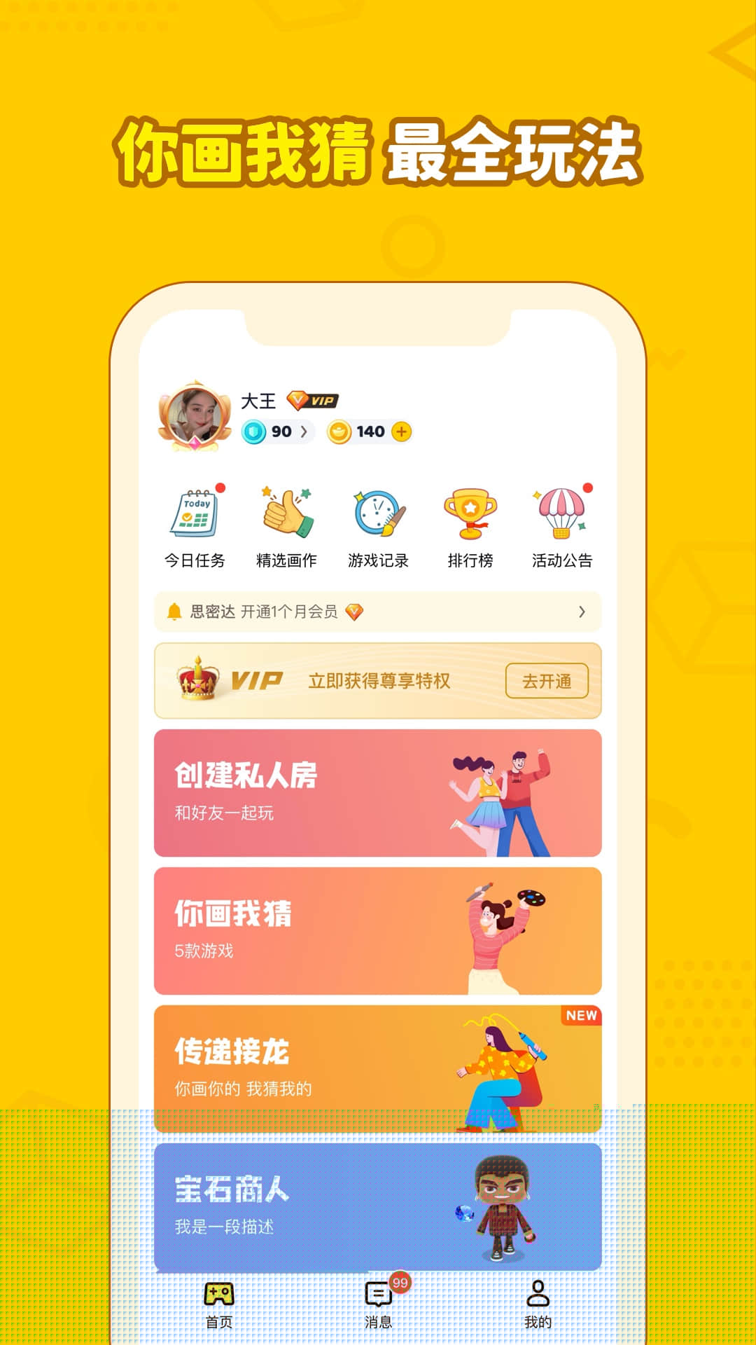 字画交替的经典接龙玩法,将图像联想与词汇解读深度结合,考验默契与脑洞。