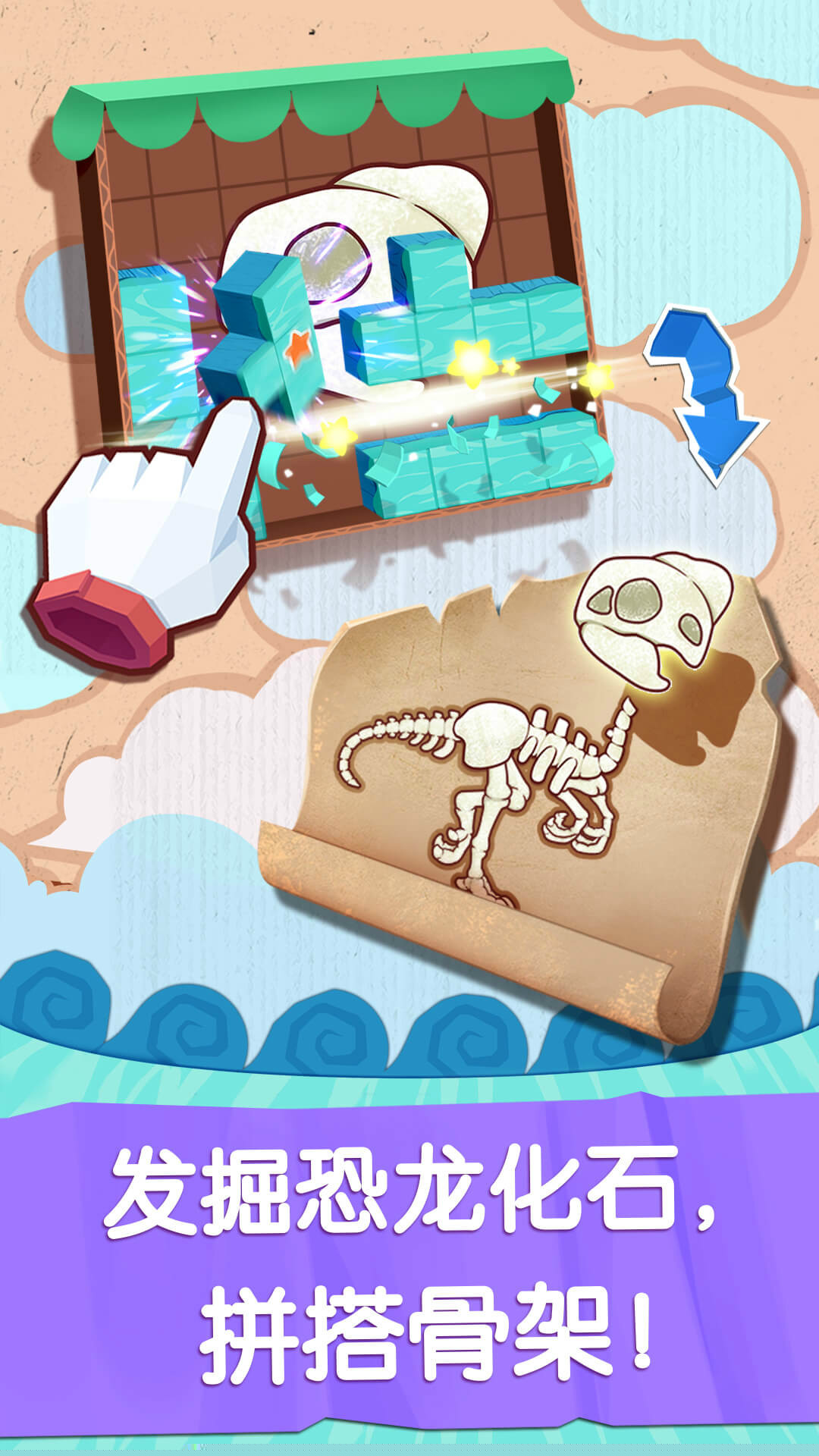 化石挖掘与拼装玩法,模拟真实考古流程,从敲击石板到完成骨骼拼图,体验完整的发现乐趣。