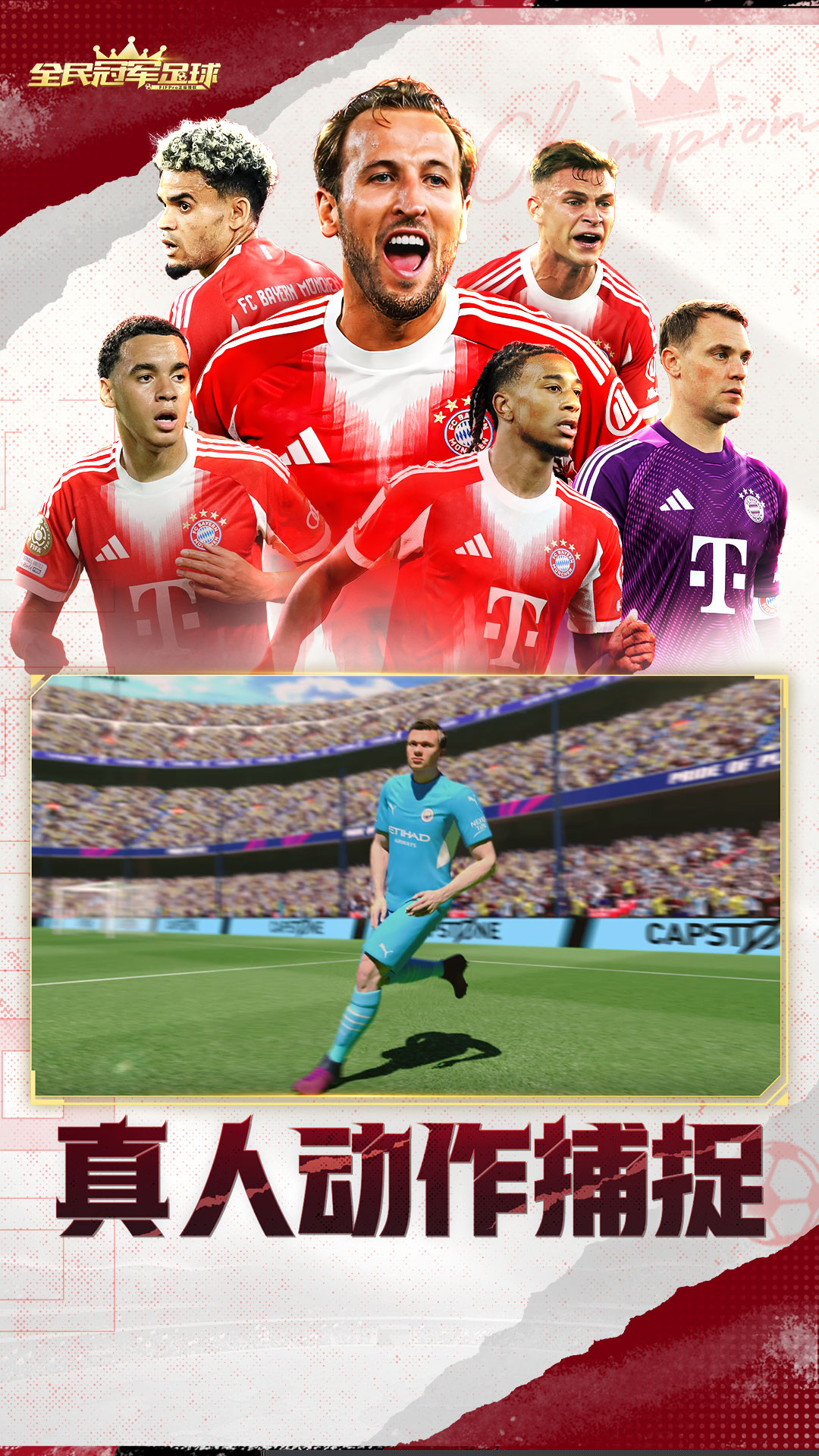全民冠军足球是一款获得FIFPro官方正版授权的策略经营足球手游,以构建和管理一支世界级的冠军球队为核心体验,汇聚了超过两千名实名登场的真实球星,并获得了包括皇家马德里、拜仁慕尼黑在内的多家顶级豪门俱乐部授权,构建了一个高度拟真的足球世界。通过全球领先的惯性动作捕捉技术,由真实球员参与录制的每一个盘带、射门和扑救动作都流畅自然,力求还原绿茵场上的力与美,独创的英雄时刻玩法,更是将策略部署与临场微操巧妙结合,为全球足球爱好者呈现出一场集深度管理与热血竞技于一体的指尖足球盛宴。