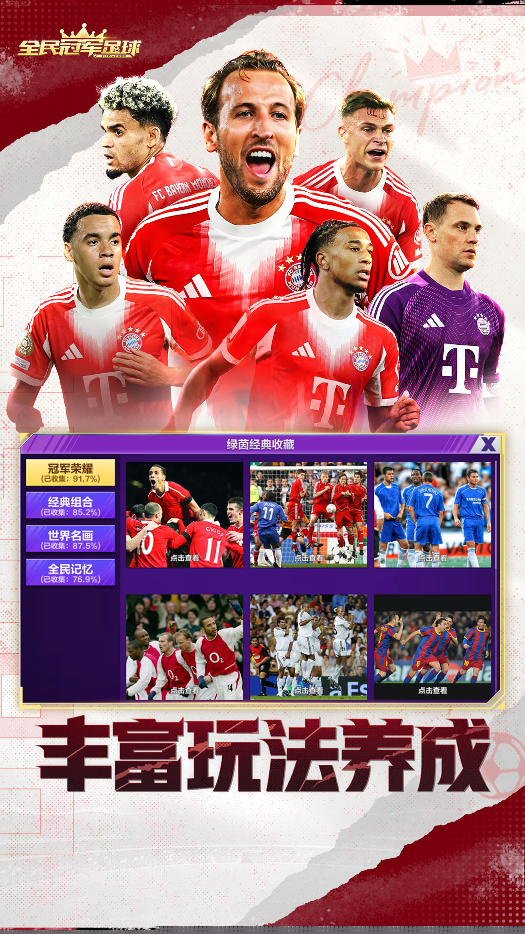 获得皇马、拜仁等多家豪门俱乐部正版授权,还原经典队徽与球衣。