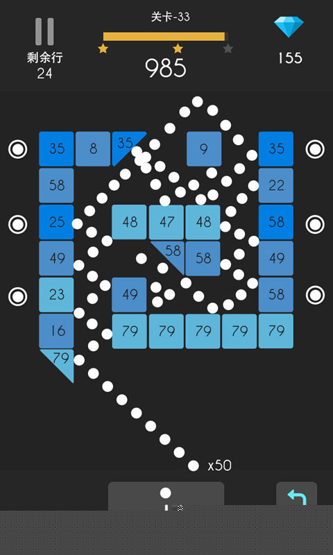 精通需掌握控场艺术。当弹球在板与方块间快速反弹时,注意力应放在球的下一个落点而非当前轨迹。通过微调发射器的左右位置,可以间接影响反弹后的角度,从而引导弹球飞向尚未被清理的区域。在复杂布局中,有时需要牺牲一次发射机会,将球调整到有利的起始反弹位置。