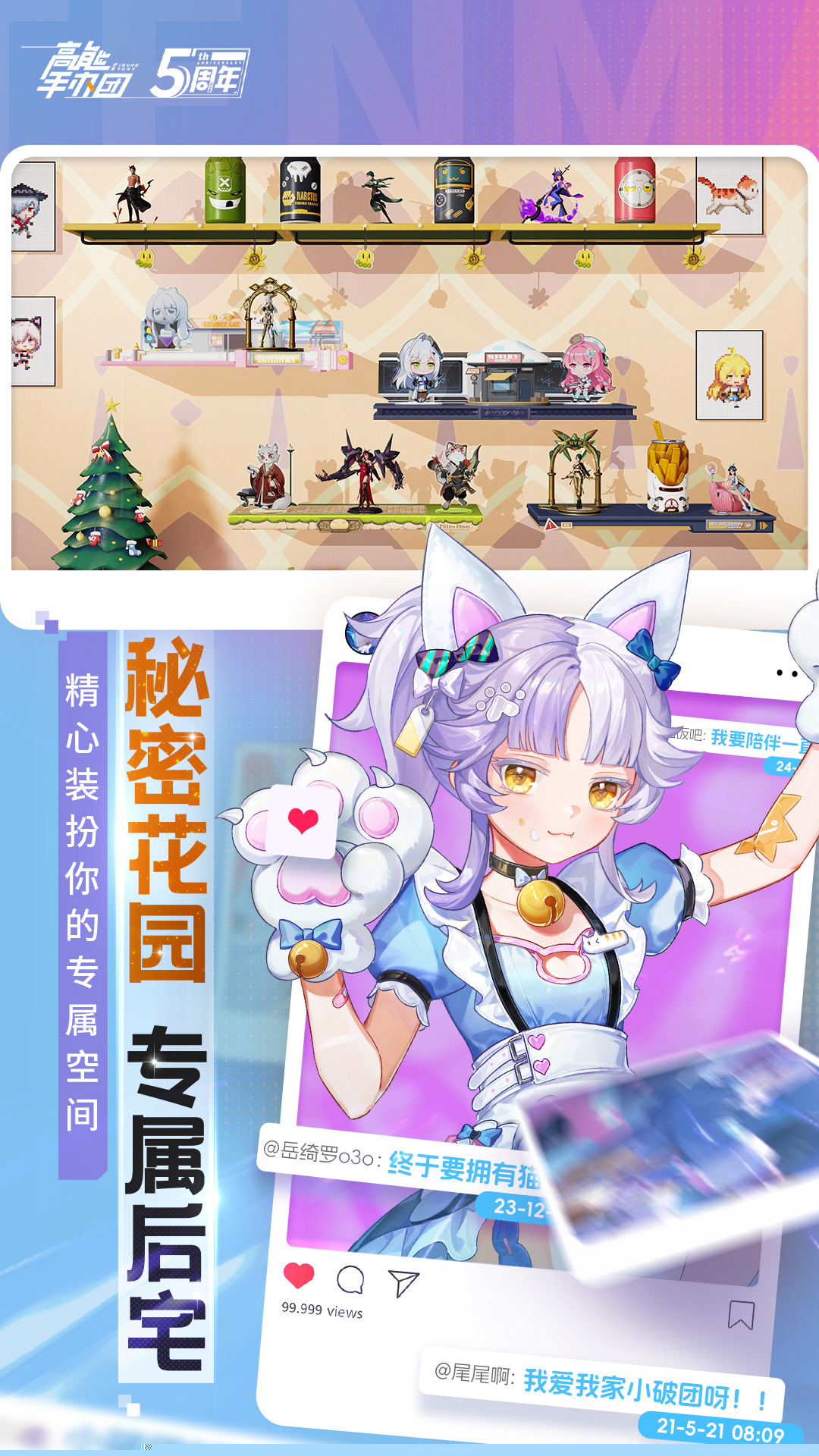高度自由的后宅装扮系统,可以自定义专属展示空间,与手办角色进行丰富的互动。