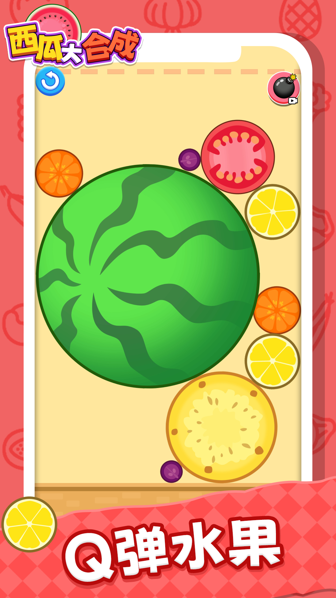 核心玩法围绕水果的物理下落与即时碰撞合成展开,操作直观且反馈即时。