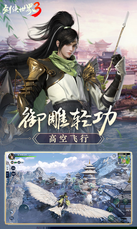 御雕轻功体系突破传统移动限制,可乘雕翱翔天际,从全新视角俯瞰并快速穿梭于广袤的武侠地图之间。
