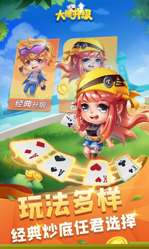大眼升级是一款融合了传统智慧与现代设计的经典纸牌竞技游戏,以广为人知的拖拉机、八十分为核心玩法,在数字平台上重现了四人两两对抗的智力博弈乐趣,构建了一个充满策略与运气的牌桌世界,玩家需要通过叫主、坐庄、控分、抠底等一系列精妙操作,与队友默契配合,力争率先升级至A并取得最终胜利,规则体系既保留了原汁原味的计分、甩牌惩罚等经典元素,又通过现代化的呈现方式,让这一历久弥新的牌类游戏焕发出新的活力。