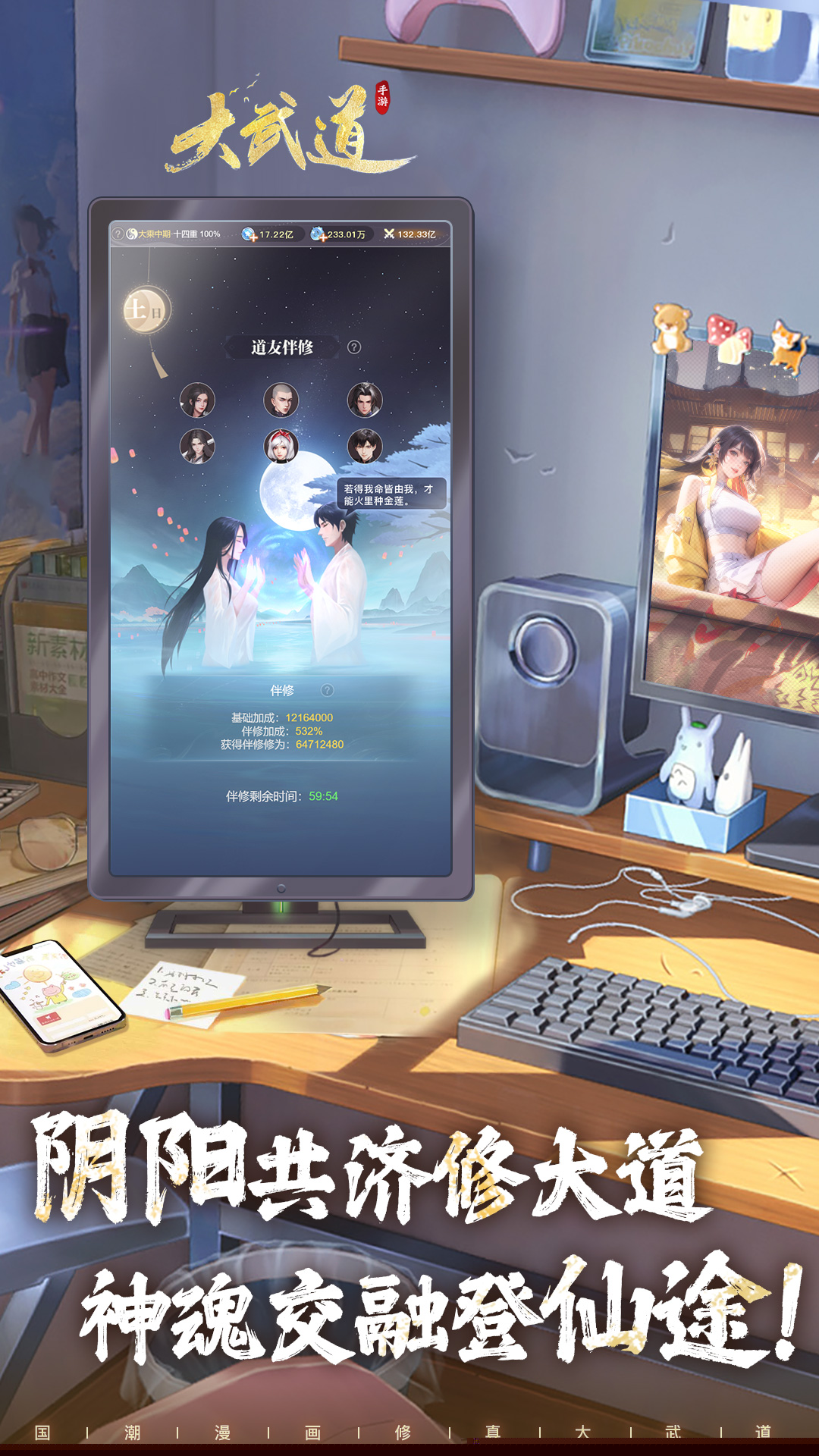 大武道是一款现代修真题材的国漫风格放置手游,故事背景设定于一个科技与仙法交织的奇异时空。玩家将扮演一位穿越而来的命运之子,肩负起穿梭诸天万界、集结力量的重任。在波澜壮阔的冒险旅途中,玩家需要不断探索未知领域,获取珍稀资源以强化自身修为,最终目标是为了守护人类文明的火种。宏大的世界观架构与超百万字的原创剧情,共同编织出一段引人入胜的修真史诗。