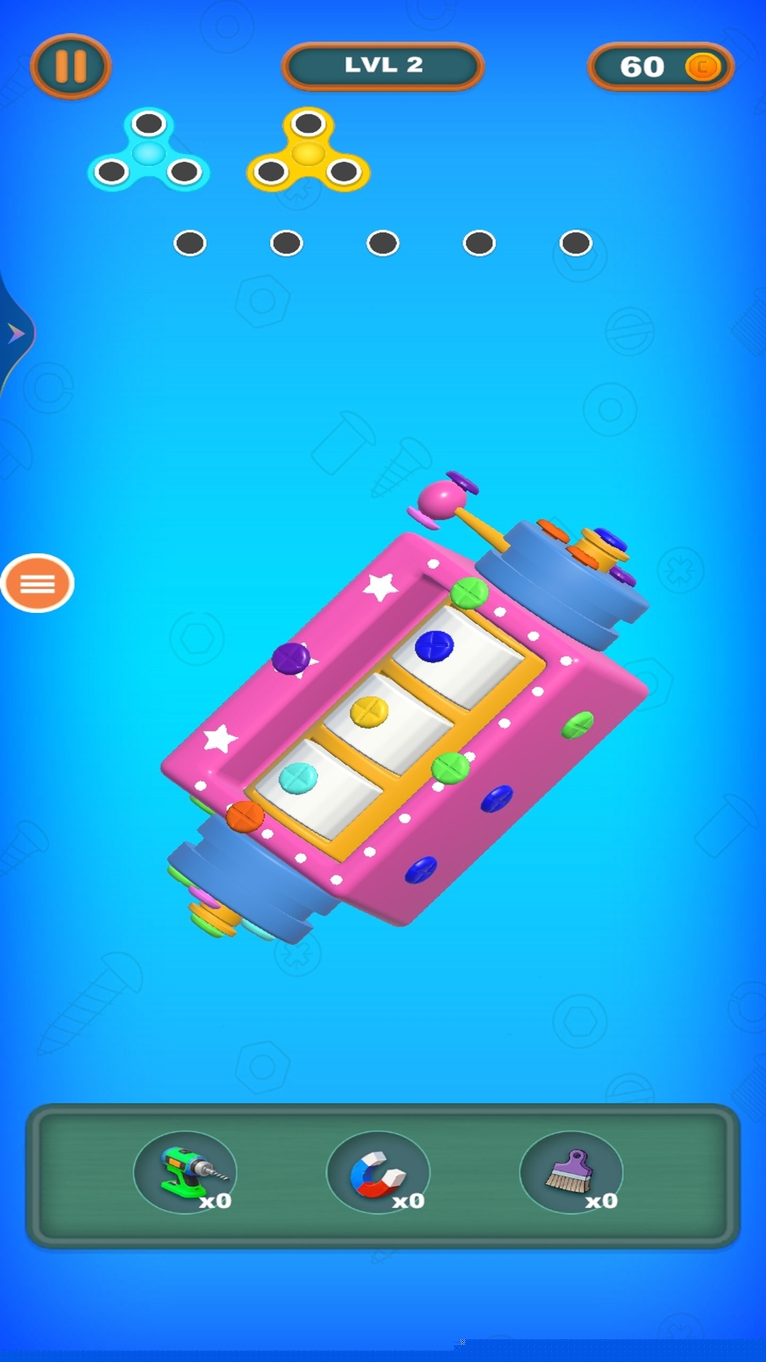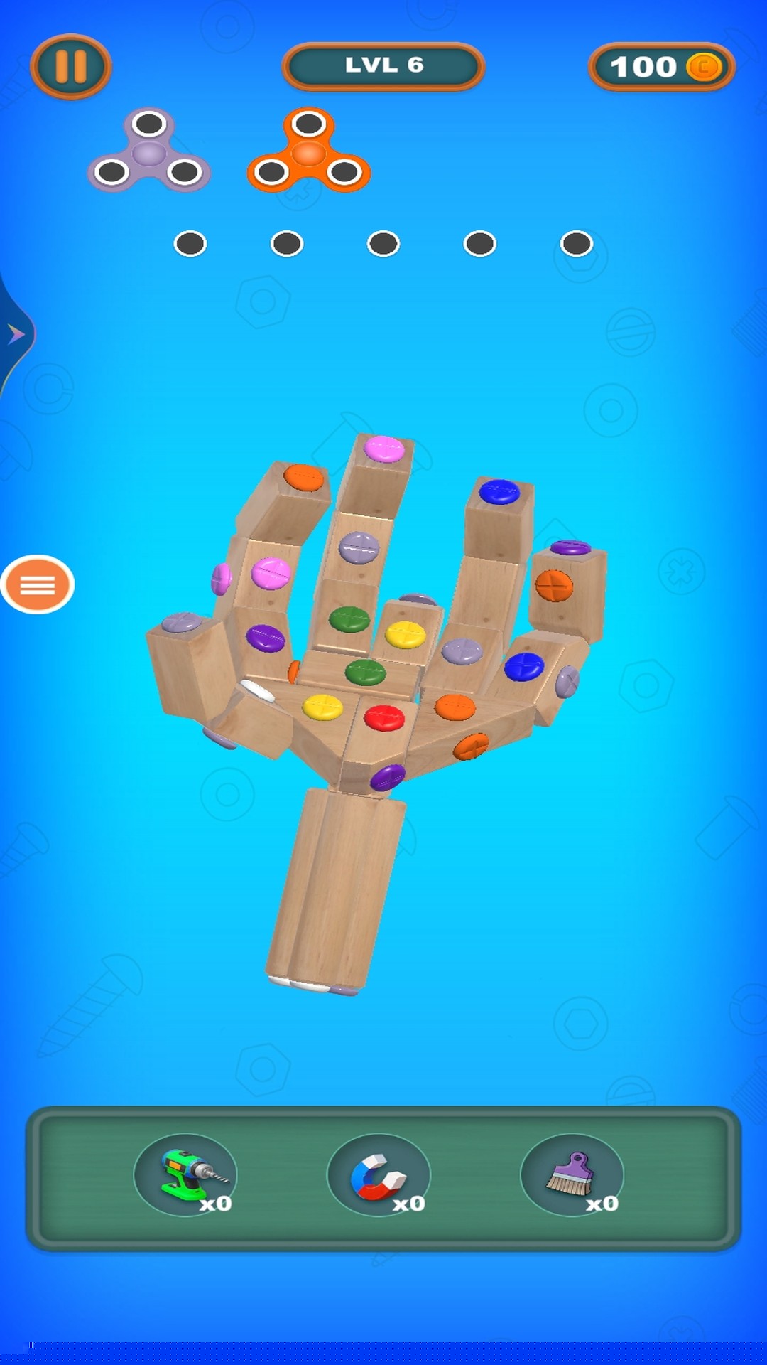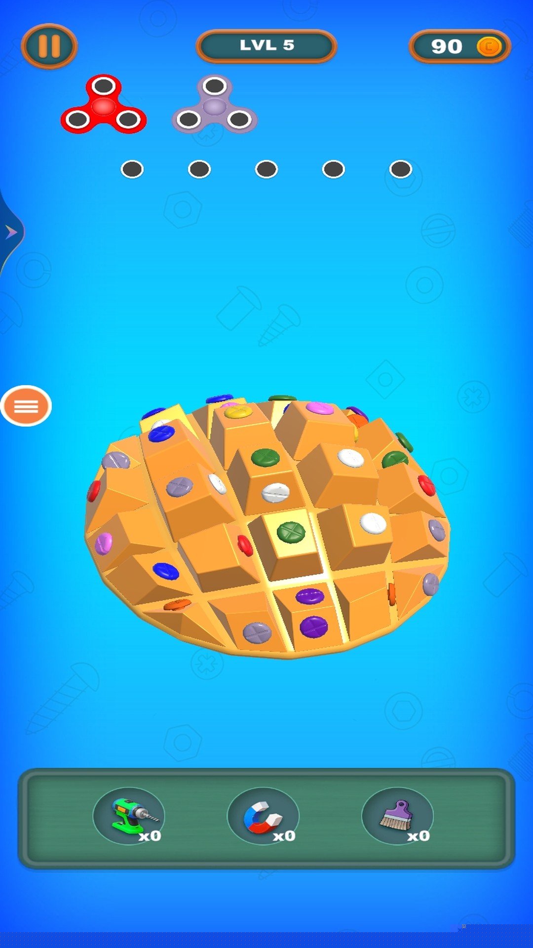 入门阶段首要任务是建立立体观察习惯。不要急于触碰任何螺丝,先旋转视角,厘清各层透明板之间的遮挡关系,在脑海中勾勒出螺丝群的空间分布图。优先标记那些颜色唯一或位置孤立的螺丝们往往是解开局部锁链的起点。初期目标并非清空版面,而是创造第一个可移动的通道。