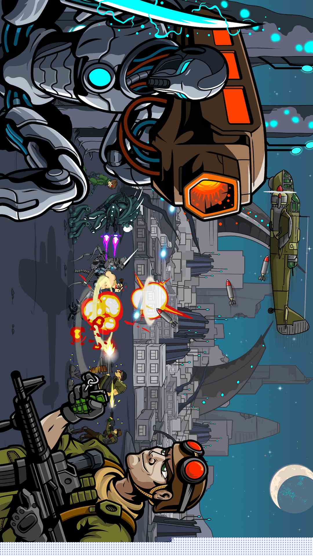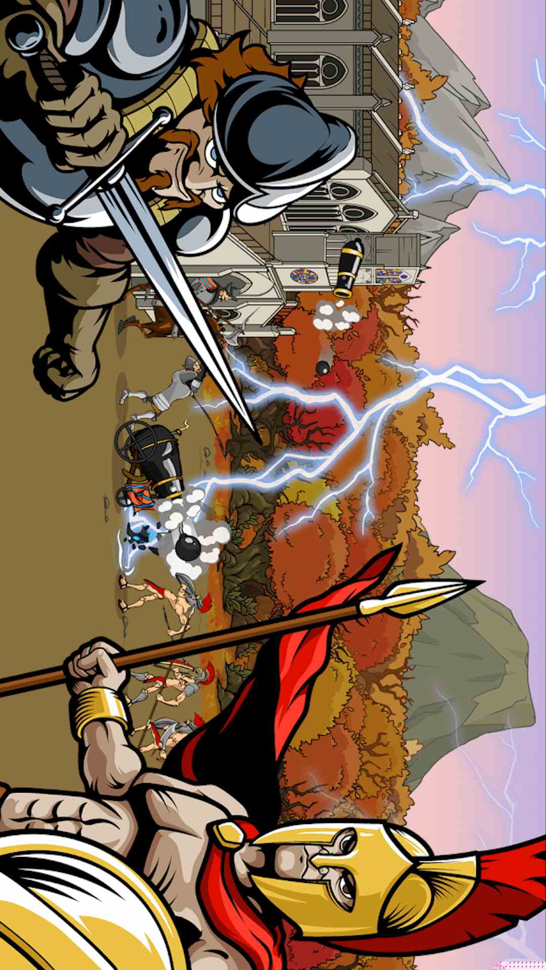 简洁明快的像素美术风格,以复古的画面生动呈现了从投石索到激光武器的战争形态变迁。