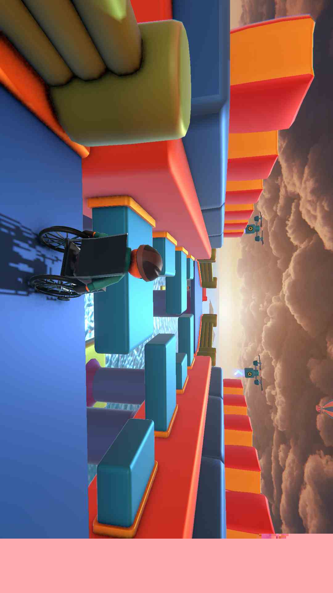 入门阶段首要任务是熟悉轮椅的基础物理特性。在平坦场地进行加速、刹车与转向练习,感受轮椅的重量感与惯性滑行距离。特别注意急转时内侧轮可能悬空导致的侧翻风险,学会通过微调前进方向与适时减速来维持平衡。初始关卡中的宽大平台和缓坡是绝佳的练习场,不要急于求成,应反复尝试直至能稳定控制行进路线。