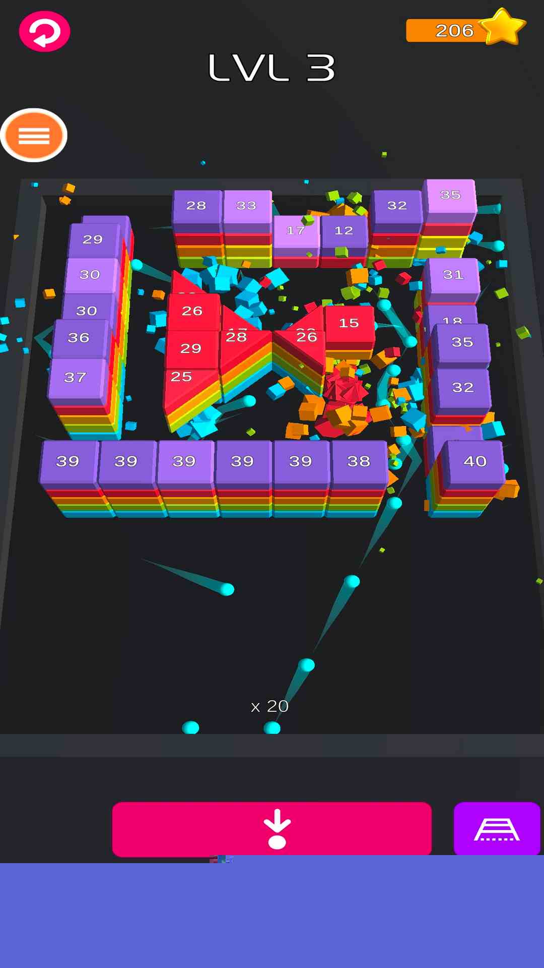 高级关卡中,动态障碍与移动砖块成为常态,玩家必须预判障碍物的运动轨迹,计算发射提前量,将球体引导至运动路径的交汇点实施精准打击。