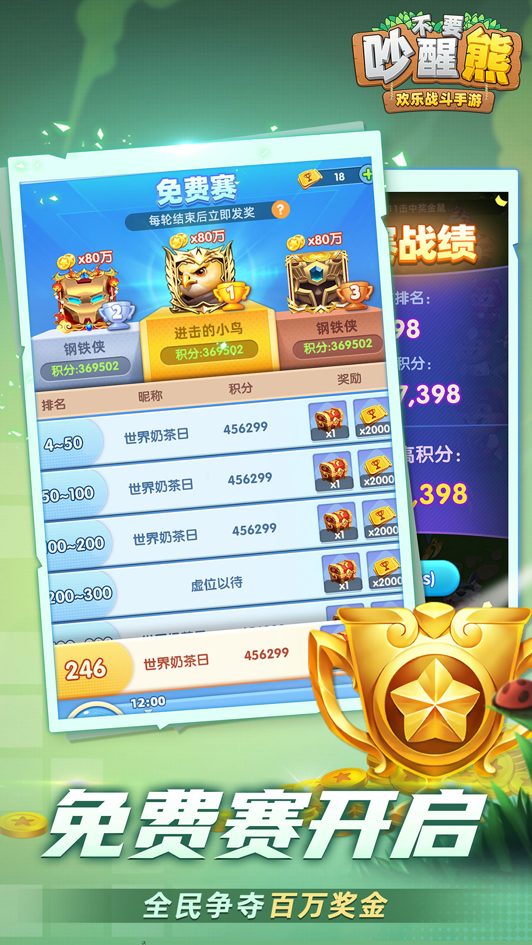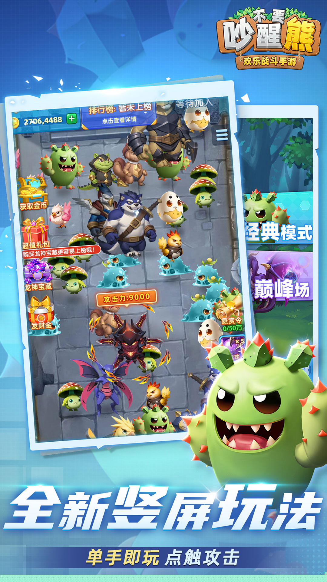不要吵醒熊是一款融合了点击操作与策略搭配的休闲战斗手游,背景设定在一个被神秘力量侵扰的奇幻森林之中。沉睡的巨熊守护着古老的宝藏,而玩家扮演的冒险者需要在醒来之前,穿越层层阻碍,击败沿途的怪物与首领。整个世界的色调明快而富有活力,营造出一种紧张又充满趣味的氛围,核心主题围绕着时机、策略与资源管理展开,每一次点击都关乎冒险的成败。
