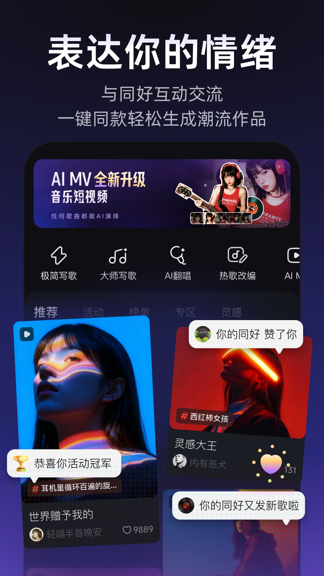社区驱动灵感循环:作品发布后能即时获得社区反馈并登上各类榜单,形成创作-展示-激励-再创作的良性循环,持续激发用户热情。
