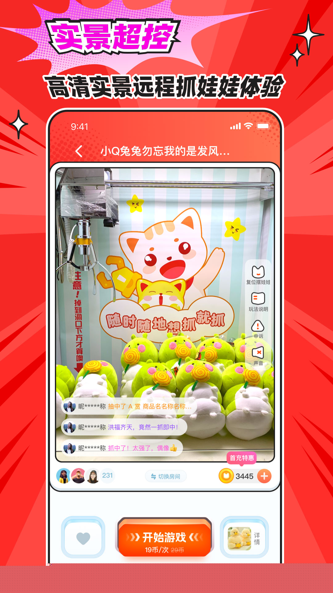 通过高清低延迟直播技术,真实呈现娃娃机内景与抓取过程,结合灵敏的操控反馈,打造身临其境的线上夹玩体验。