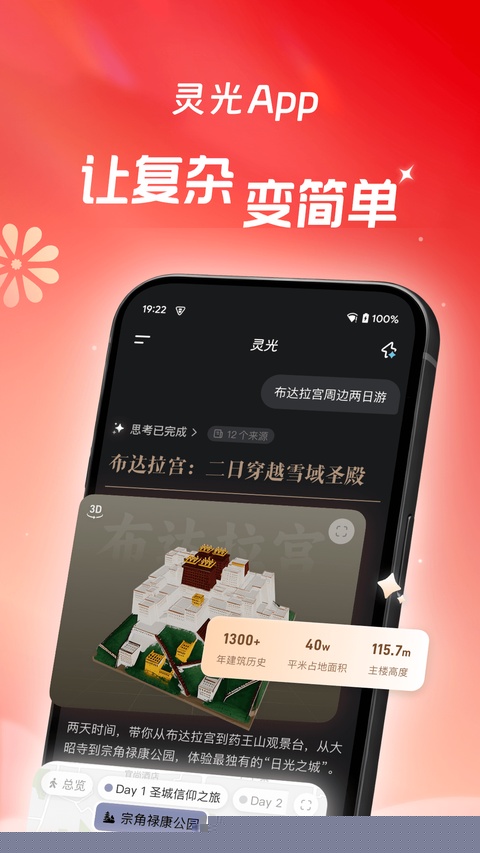 在出行前,直接描述目的地与需求,灵光可生成附带详细标记的可交互地图,帮助用户清晰规划路线与动线,提升决策效率。