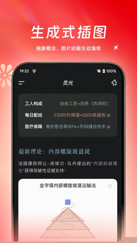 灵光是一款由蚂蚁集团推出的全模态人工智能助手,核心在于融合了语言、图像、语音与数据的深度理解与生成能力。不同于传统单一模式的AI工具,灵光打破信息呈现的边界,能够将复杂概念或数据转化为3D模型、动态图表、可交互地图乃至生成式动画等多种直观形式,让知识的获取与创作过程变得立体、生动且高效,为用户提供一种全新的、沉浸式的智能交互体验。