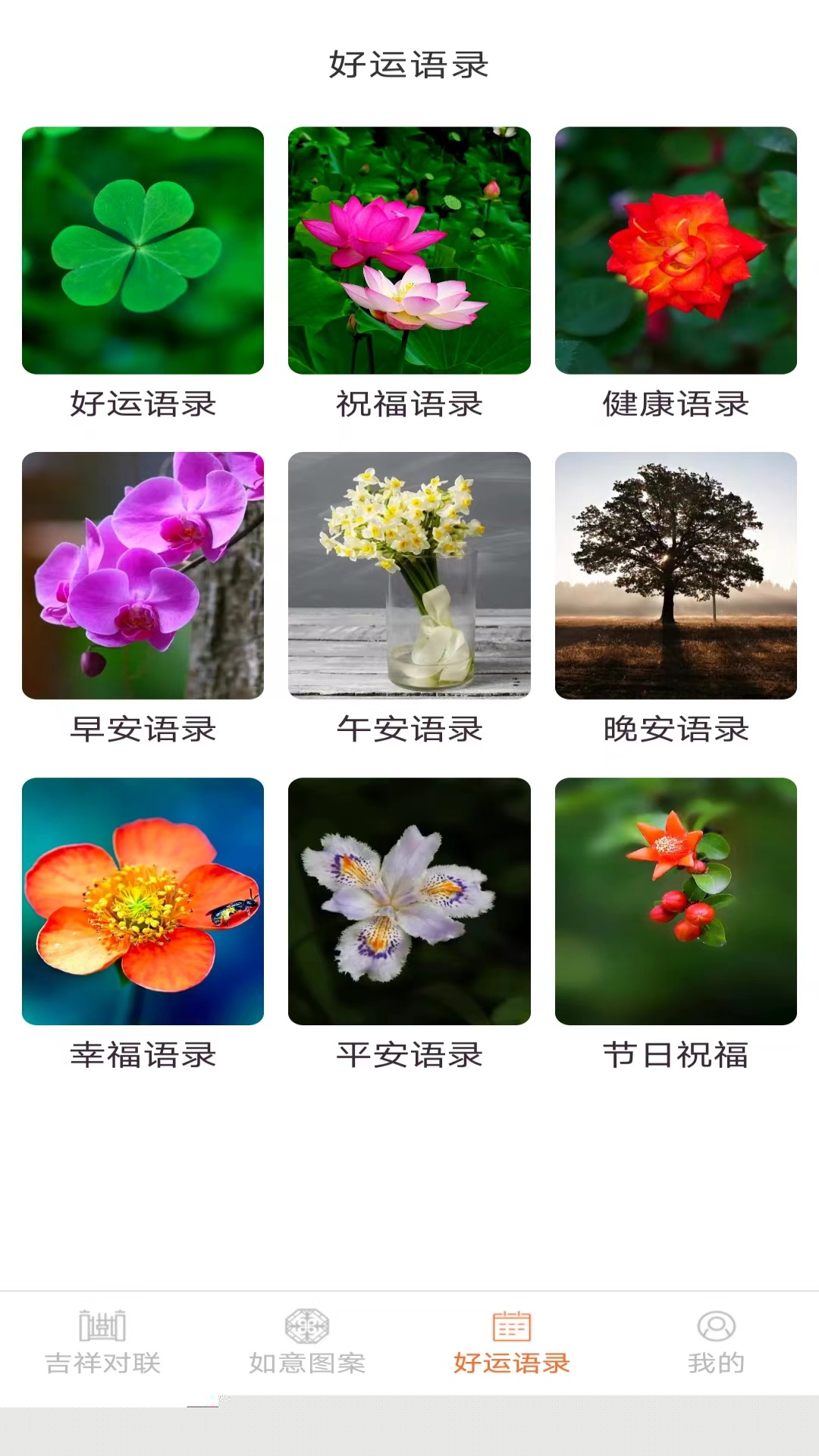 提供好运、祝福、健康等多维度语录分类,用户可创建个人收藏夹,将喜爱的句子归类管理,便于随时查阅。