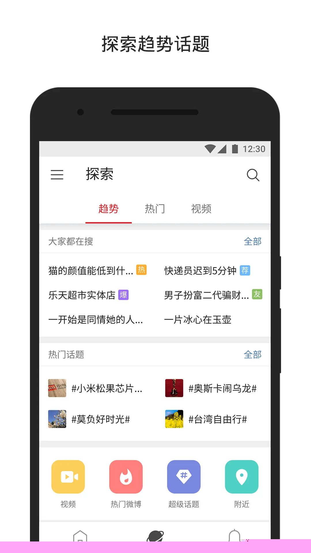 集成热门搜索、热门微博和热门视频榜单,帮助用户快速把握当下社交平台热议话题,不错过任何重要资讯与流行趋势。
