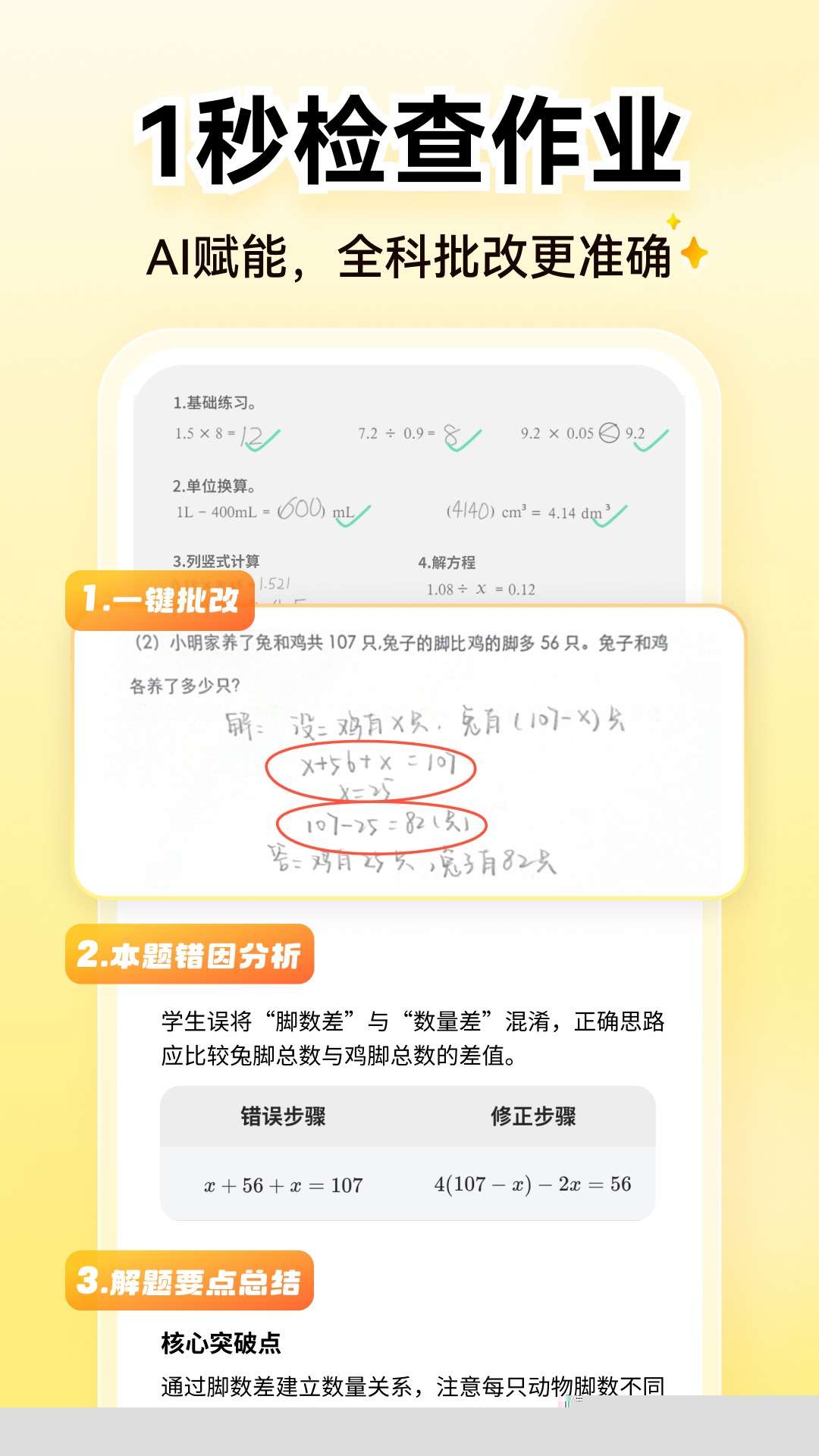 家长或学生只需拍照上传作业,即可获得准确、快速的批改结果与正误标注,解决了传统人工检查耗时耗力且易出错的痛点。
