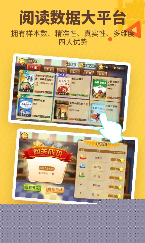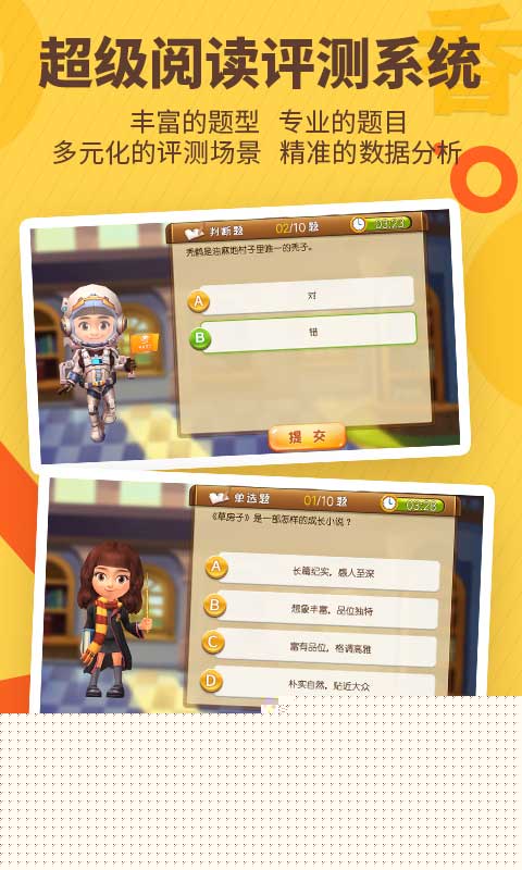 体验沉浸感:界面设计贴合儿童认知心理,互动形式生动有趣,能有效降低阅读畏难情绪,提升专注度。