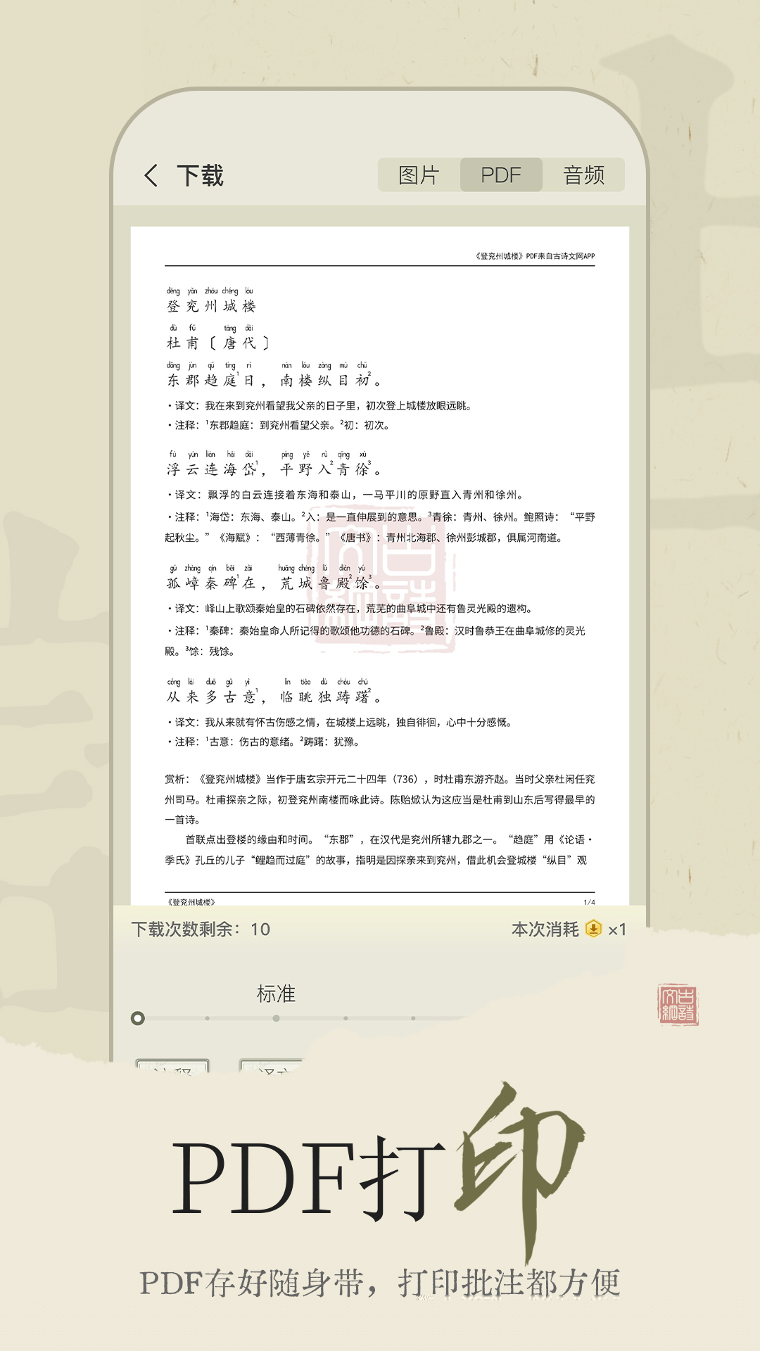 支持原文、译文、注释、赏析与拼音的自由组合分屏显示,满足深度研读与快速浏览的不同场景。