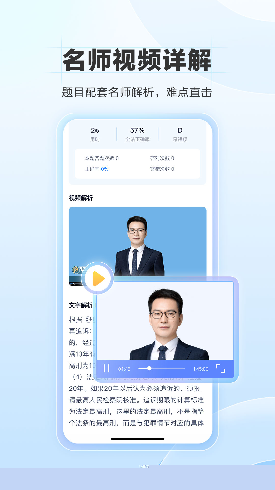 针对复杂疑难题目,关联专业讲师的精讲视频,通过视听结合的方式突破理解瓶颈。