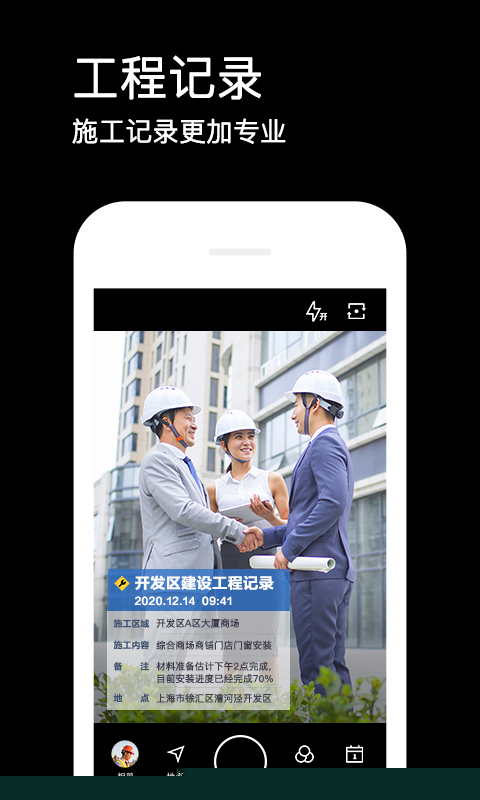 拍摄完成即可快速将带水印的照片分享至主流社交平台,简化工作汇报流程。