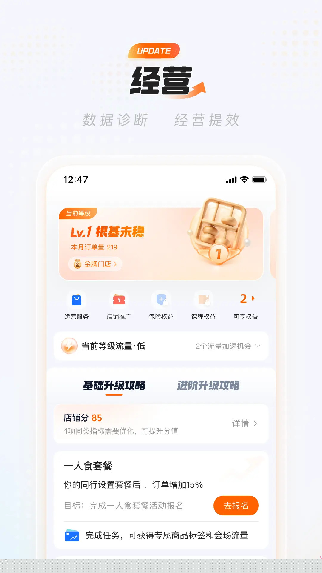 个性化成长路径:提供的经营建议并非通用模板,而是结合商户自身数据生成,助力实现阶梯式业务成长。