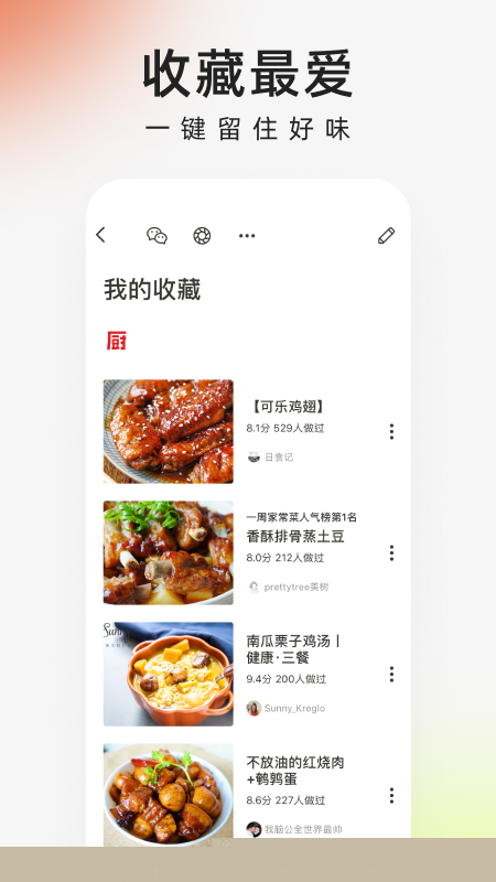 生态闭环完整:集菜谱查询、厨艺学习、食材购买、厨友社交于一体,满足关于吃的全方位需求。