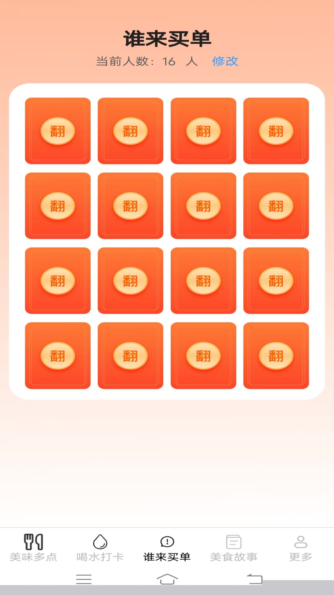在谁来买单环节中,支持录入参与人员与消费金额,由系统随机选定支付者,公平透明地处理AA制或轮流请客场景。