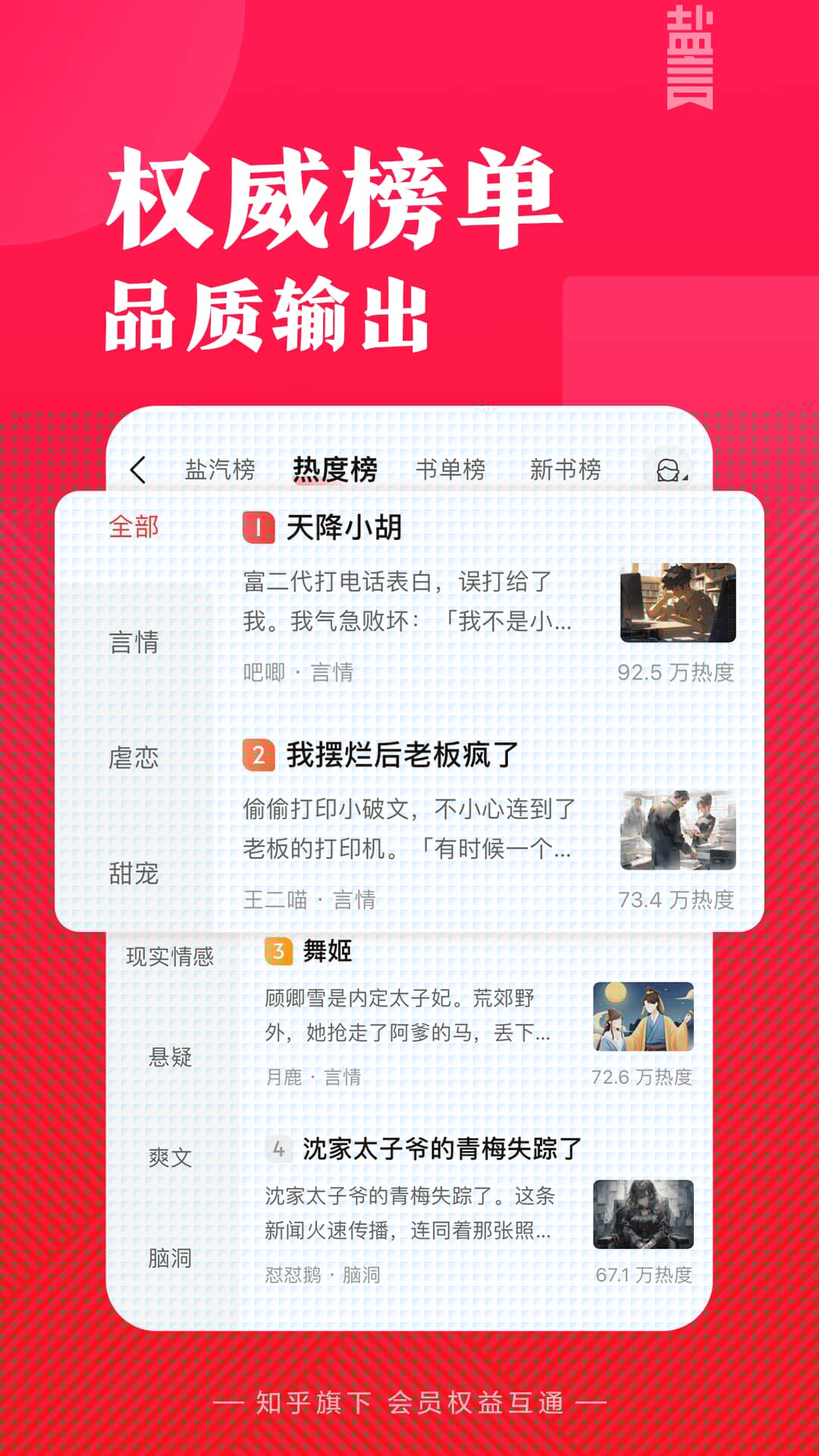 与知乎盐选会员权益互通,一次开通即可畅享两大平台的优质付费内容。