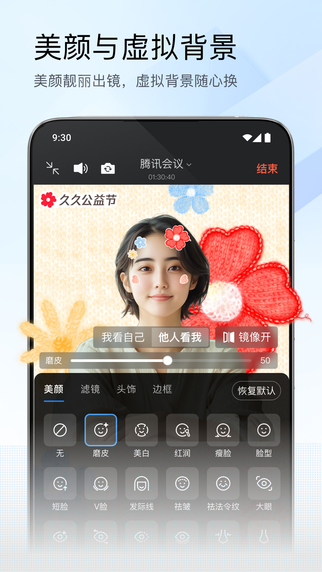 内置虚拟背景与美颜效果,允许用户自定义会议背景或进行面容优化,有效保护个人隐私并提升在非正式办公环境下的专业形象。