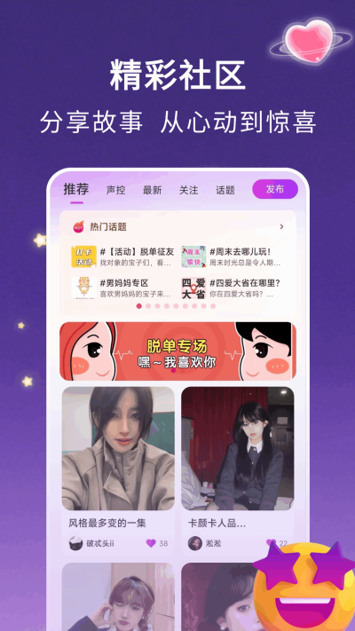沉浸式语音社交场景:集成实时语音房与4i电波通话,以声音为载体,营造真实自然的交流氛围。