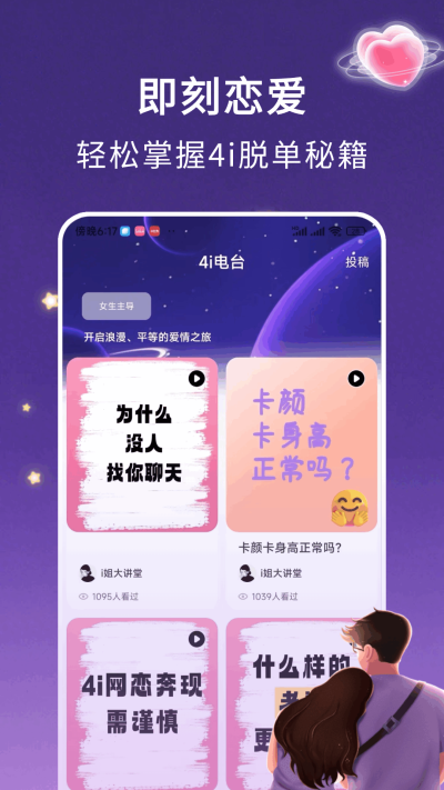 4i星球是一款由武汉语舟科技有限公司匠心打造的垂直社交软件,专为追求深度、真诚与趣味互动的年轻人群设计,以兴趣、价值观与人格特质为基石,构建了一个能够精准连接灵魂共振伙伴的社交空间。无论是寻找思想共鸣的知己,还是期待温暖陪伴的友人,都能在精心设计的互动场景与社区氛围中,体验到高效而富有意义的连接,告别传统社交的浮华与低效。
