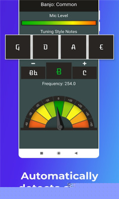 预设多种乐器调音模式,涵盖吉他、贝斯、小提琴、尤克里里等常见类型。